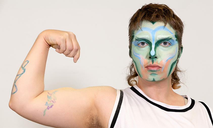 Artmix twin exhibition by Noé Duboutay (he/they), Darja Linder (she/her), Sophia Lökenhoff (they/them), and Hannah Mevis (she/her)